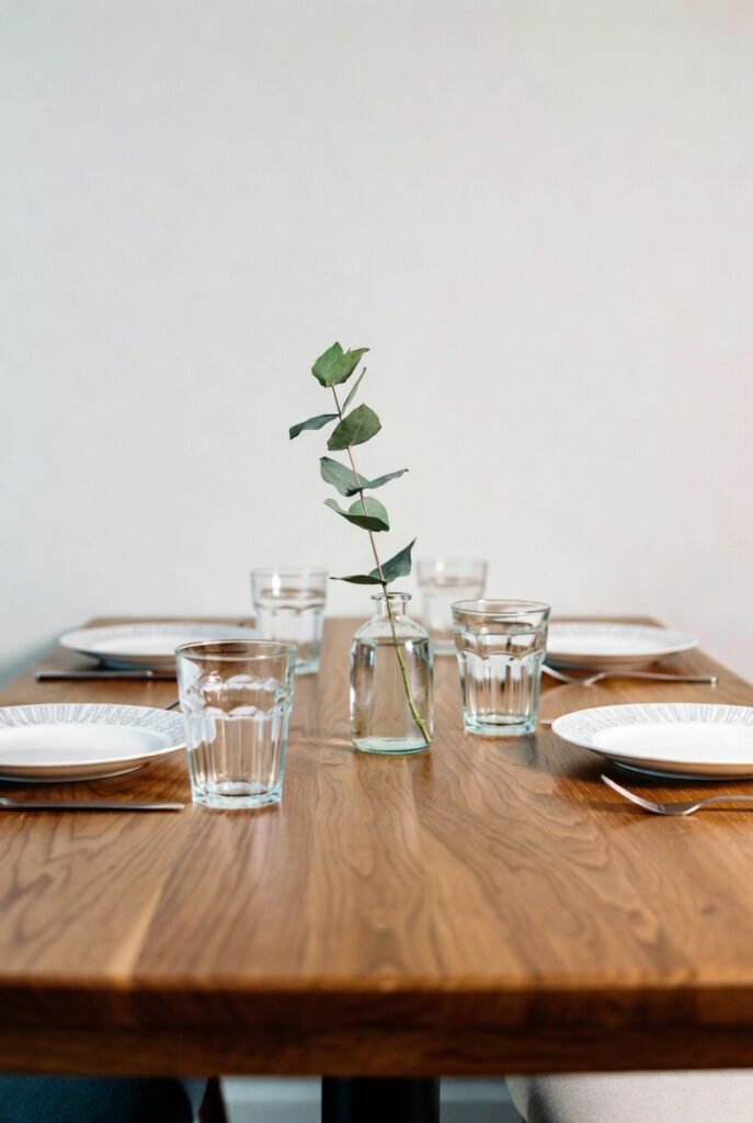- One solid wood dining table (even if it has scratches—especially if it has scratches)