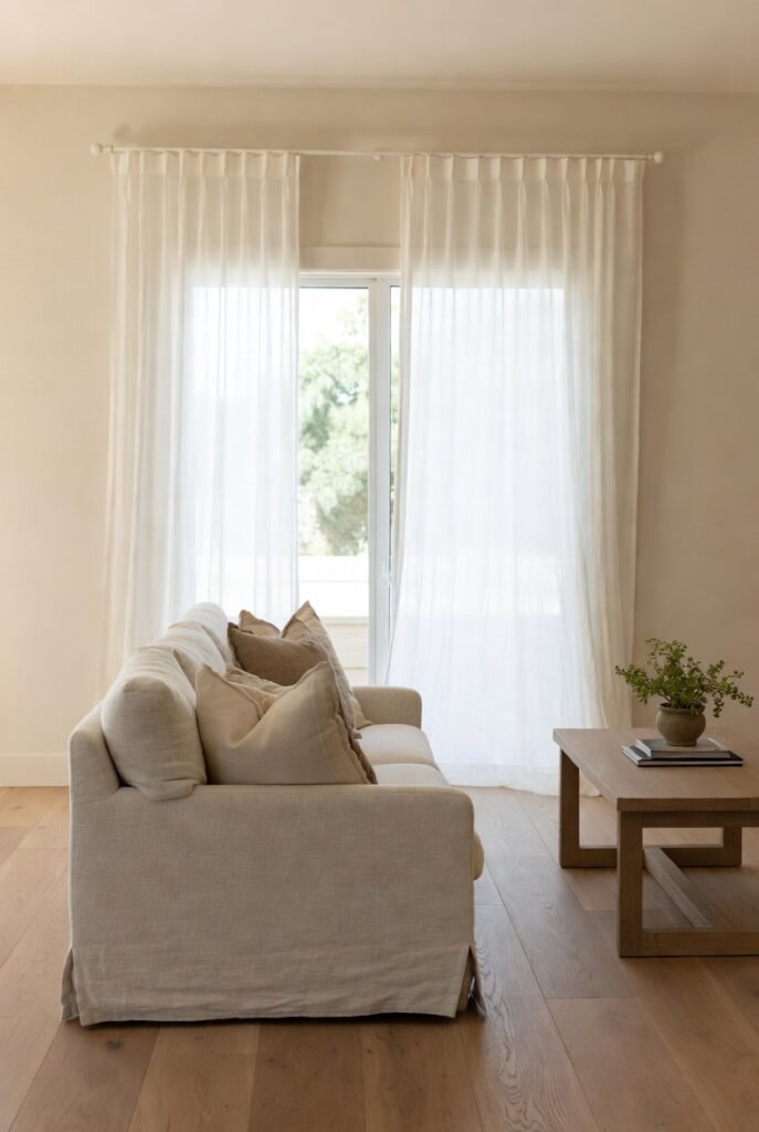 Also: curtains that just kiss the floor look intentional. Curtains that stop awkwardly halfway look like they’re waiting for a flood.